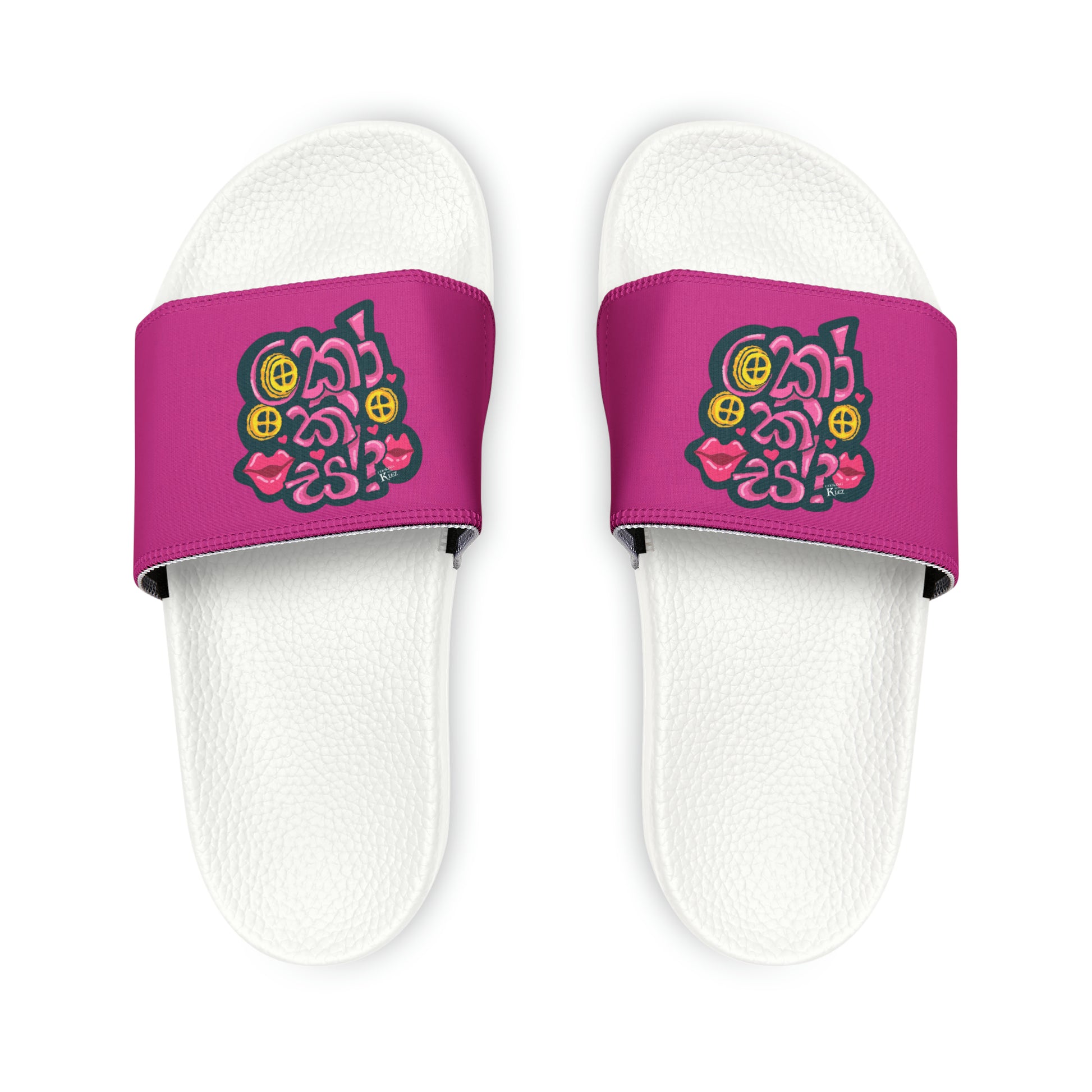 These sandals feature a design with the words "Kokis" decorated in popping pink color, set against a white or black background, showcasing your love for Sri Lankan cuisine.